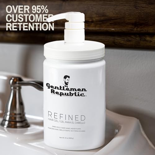 Gentlemen Republic 32oz Refined Hair Gel with Pump for Men – Premium Gel For Men Humidity Resistant & Alcohol-Free – All Day Shine and Hold for All Hair Types and Never Flakes – Made in the USA