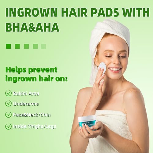 Ingrown Treatment Hair Pads, Ingrown Treatment Pads with AHA+BHA, Ingrown Hair Wipes For Bikini Area, Razor Bumps, Underarm , Exfoliate Skin,Ingrown Hair Serum for Face, Neck, 50 Pads
