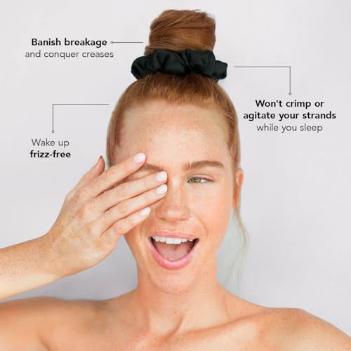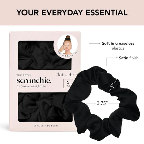 Kitsch Satin Scrunchies for Women – No Crease Hair Ties for Girls | Scrunchies For All Hair Types and Textures, Perfect for Day or Night – 5 Pcs, Black