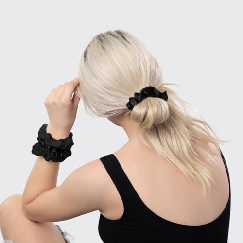Your Everyday Hair Scrunchie: These girls scrunchies for thin hair & all hair types offer a secure hold without leaving dents or creases, making our big scrunchies for women perfect for everyday wear and active lifestyles. Effortlessly match any outfit with our 5-pack black scrunchies for hair.